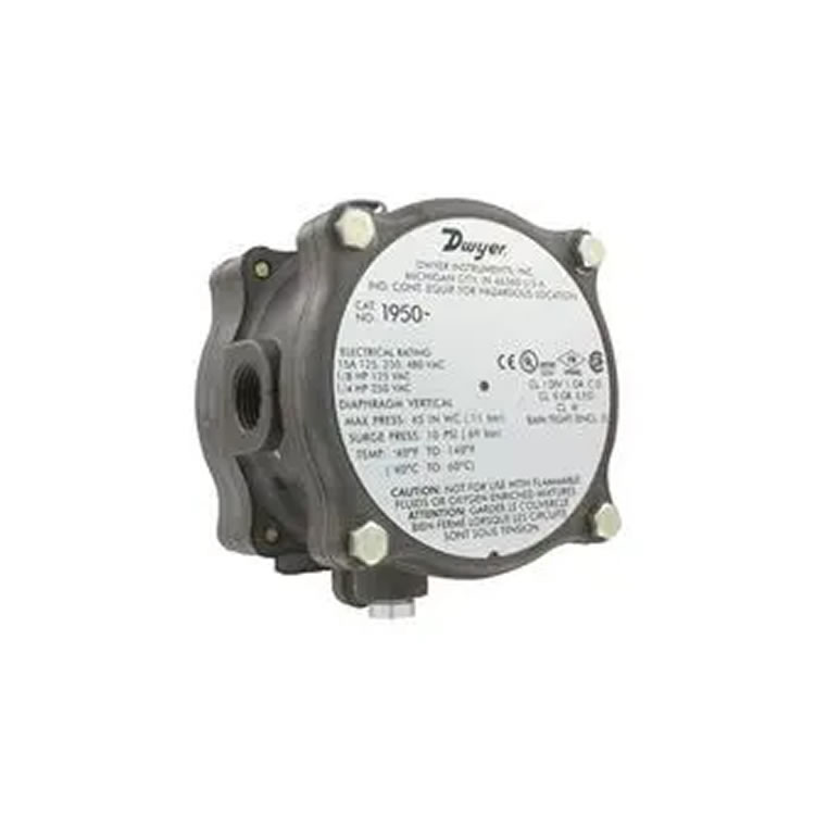 美國Dwyer 1950-0-2F防爆差壓開關(guān),1950系列經(jīng)典設(shè)計(jì),量程0.15–0.5 inH?O,重復(fù)精度±1%。鑄鋁外殼防爆認(rèn)證,1/8" FNPT接口,SPDT干接點(diǎn)15 A@480 VAC,面板安裝,設(shè)定點(diǎn)螺釘調(diào)節(jié),死區(qū)可調(diào),專為潔凈室、過濾器、風(fēng)管等微差壓報(bào)警設(shè)計(jì),性能穩(wěn)定,免維護(hù)。