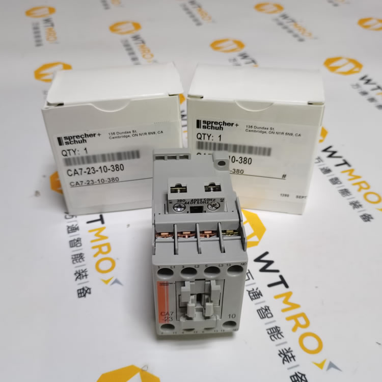 CA7-23-10-380,Sprecher-Schuh,系列CA7,非反向接觸器,CA7型,UL認證,CSA認證,3P,3PH,32A AC-1,23A AC-3,600V,5HP @ 200V,7.5 HP @ 230V,15HP @ 460V,15HP @ 575V,在電源側(cè)配有380-400V 50Hz / 440V 60Hz交流線圈,1個常開輔助觸點,開式,適用于CA7系列電機控制系統(tǒng)。